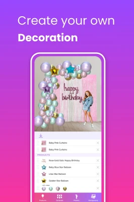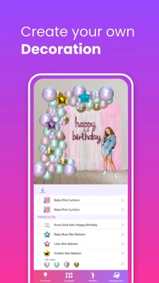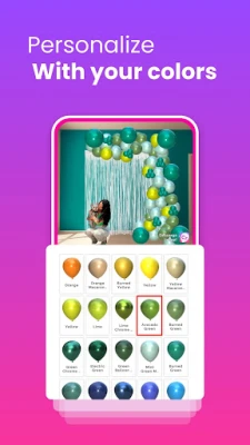 Custom Balloon Garlands: Use stunning balloon garland designs with just a few taps. Select the colors and patterns to achieve the perfect combination that suits your celebration.
