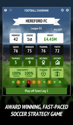Hire and fire managers, develop your stadium, negotiate transfers, contracts and sponsorship deals... while keeping the fans and the bank manager happy.